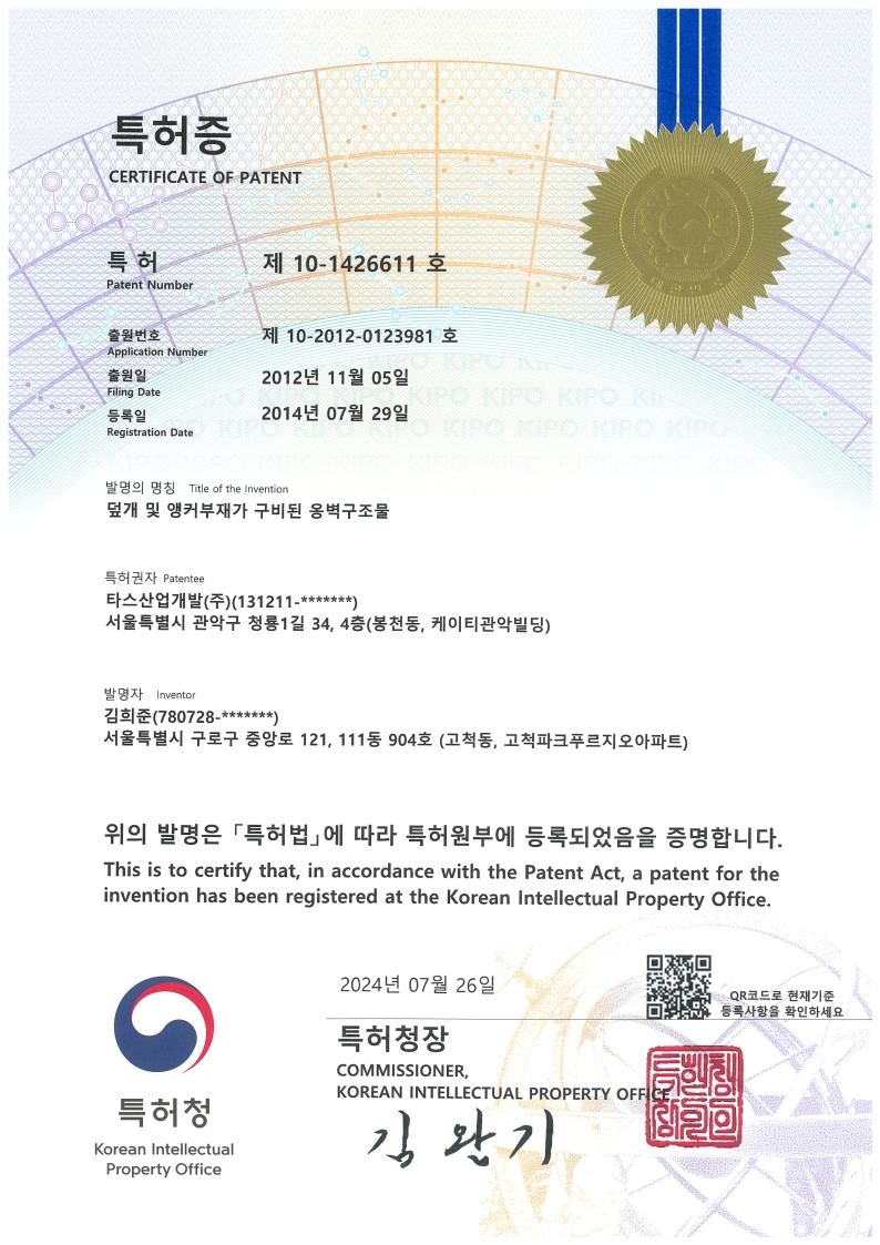 P.C Panel과 GeoBolt를 일체화하여, 깍기 비탈면의 전단강도를 향상시켜 비탈면의 전단파괴에 저항하여 절취면을 안정화하는 역할을 수행하며, 기존의 개념에서 추가적으로 GeoBolt의 선단부에 쐐기기능을 강화함