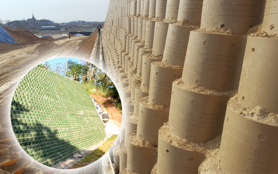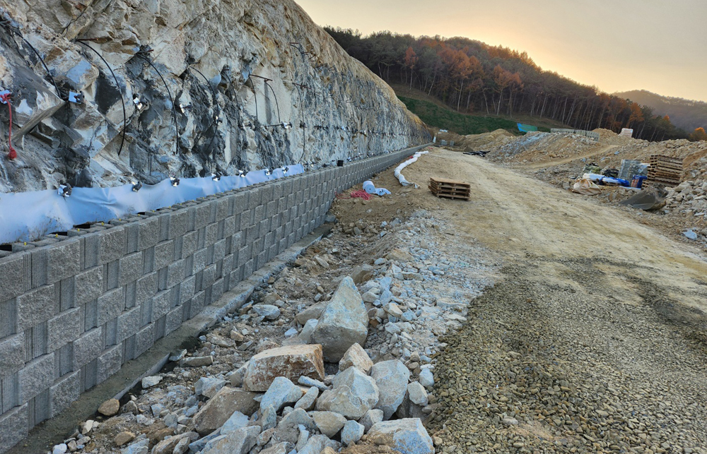 보강토옹벽, 절토부옹벽, 중력식옹벽,각각 및 혼합적용 가능