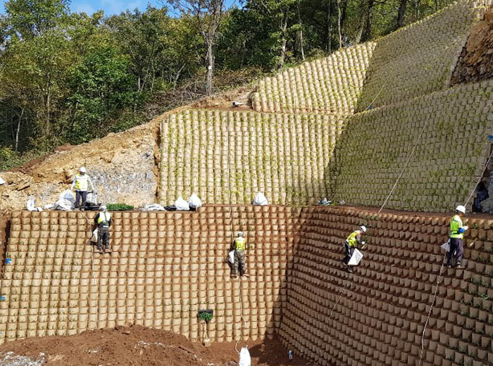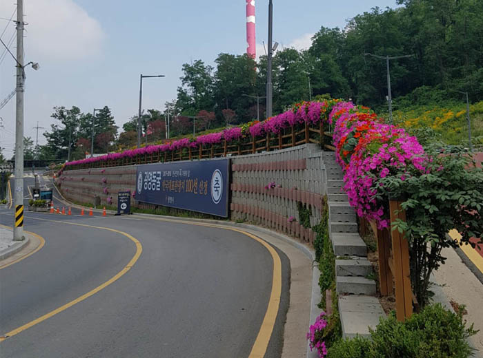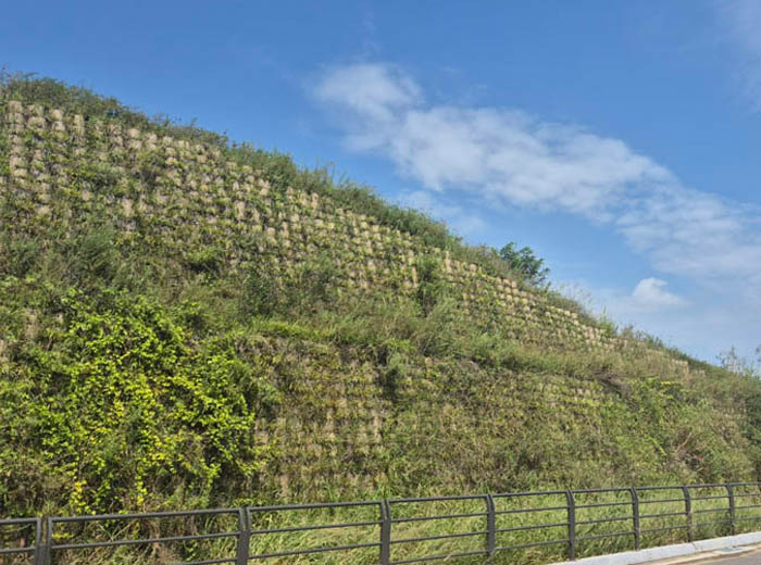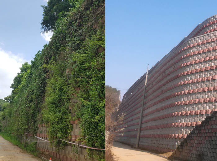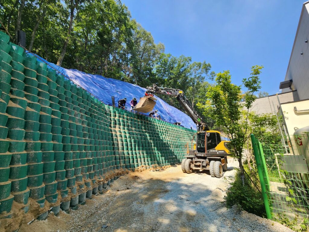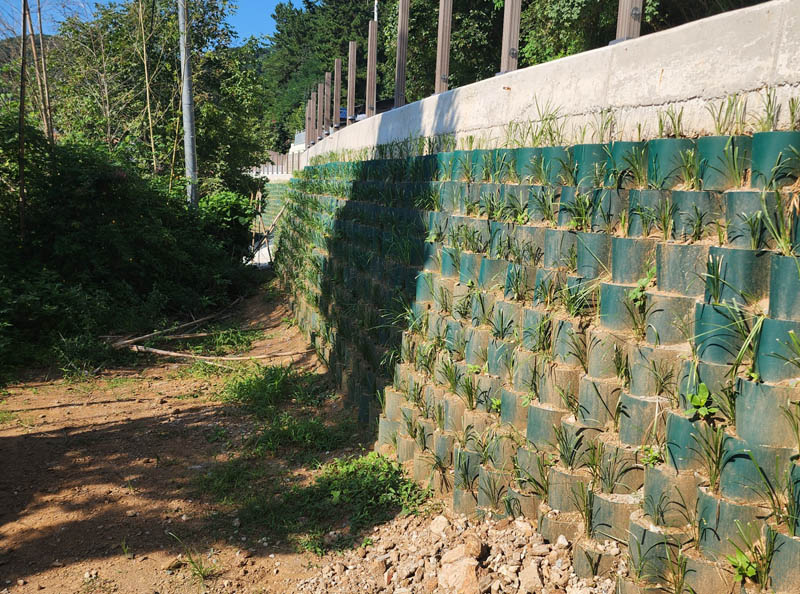 지오타이옹벽(하부) 및 블럭식옹벽(상부)